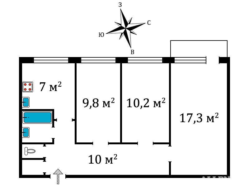 этаж: 10 (всего: 10), кол-во комнат: 3 Продается отличная 3-комнатная квартира 58,2 кв.м в 15 минутах от метро.