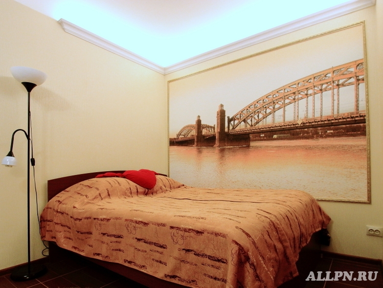 Эксклюзивно изготовленная в единичном экземпляре специально для этой квартиры 3D фреска - фотообои полностью меняет пространство, украшая её видом красивейшего моста Санкт-Петербурга – моста Петра Великого, который находится всего в 600 метрах от дома. Набережная Невы - хорошее место для пеших прогулок и занятий спортом - велосипед, ролики, напротив Смольный Собор.