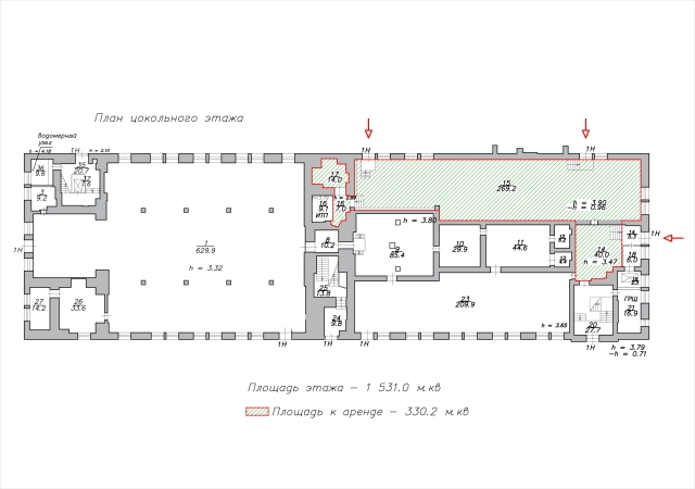Аренда помещения 330 кв. м., 1 этаж, м. Петроградская